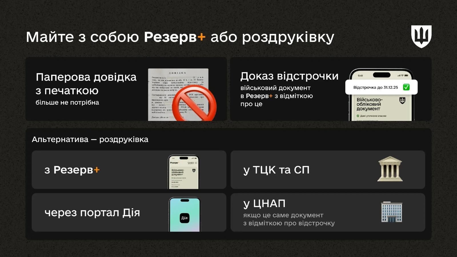 Основним підтвердженням відстрочки тепер є електронний військово-обліковий документ у застосунку Резерв+.